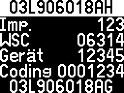 Identification Read the connected module's identification information. [title] - hardware numberImp. - importer codeWSC - workshop codeGerät - designatorCoding - short-coding value (only for KWP)[last line] - software number
