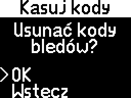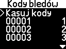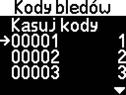 Opcja Wstecz znajduje się na dole menu, za wszystkimi kodami błędów.