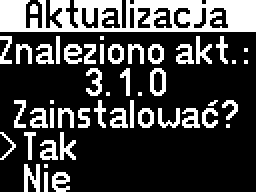 Jeśli dostępna jest nowa wersja oprogramowania, pojawi się prośba o potwierdzenie instalacji: