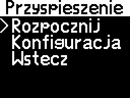 Przyśpieszenie To narzędzie służy do mierzenia czasu przyspieszania między dwiema prędkościami. Rozpocznij - uruchom narzędzie z bieżącymi ustawieniamiKonfiguracja - zmień ustawienia narzędziaWstecz - powrót do Narzędzia